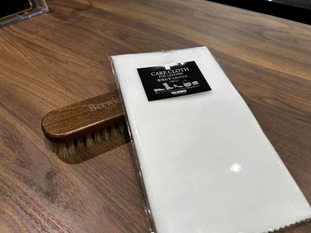 クリームを革になじませる豚毛のブラシ