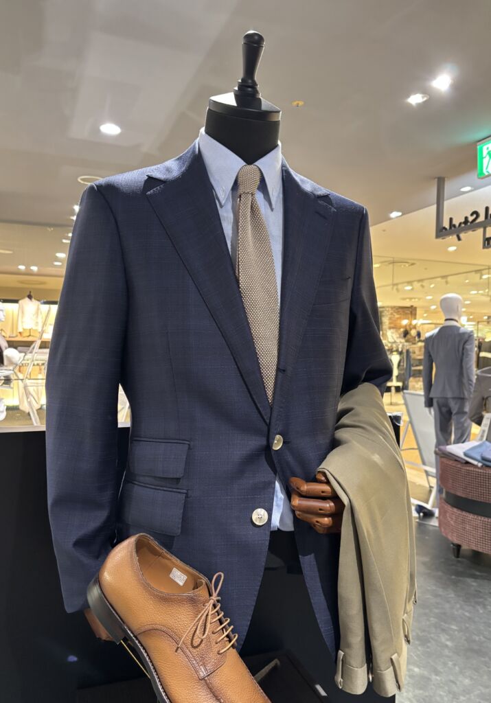 ノーネクタイでもジャケットを羽織るだけで随分と印象は変わります。