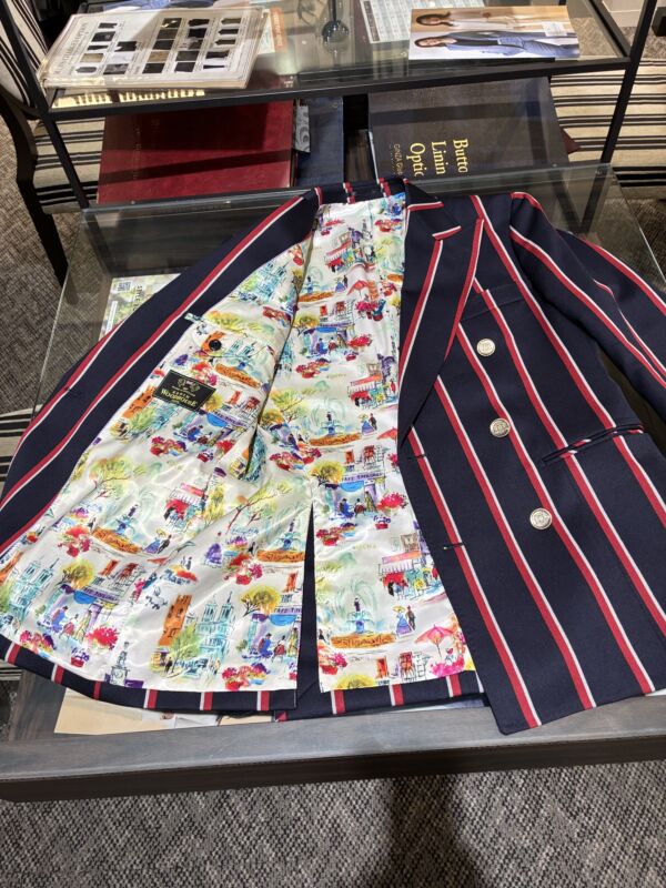 ダブルジャケットで、何とも言えないこの太めのストライプがかわちぃ笑