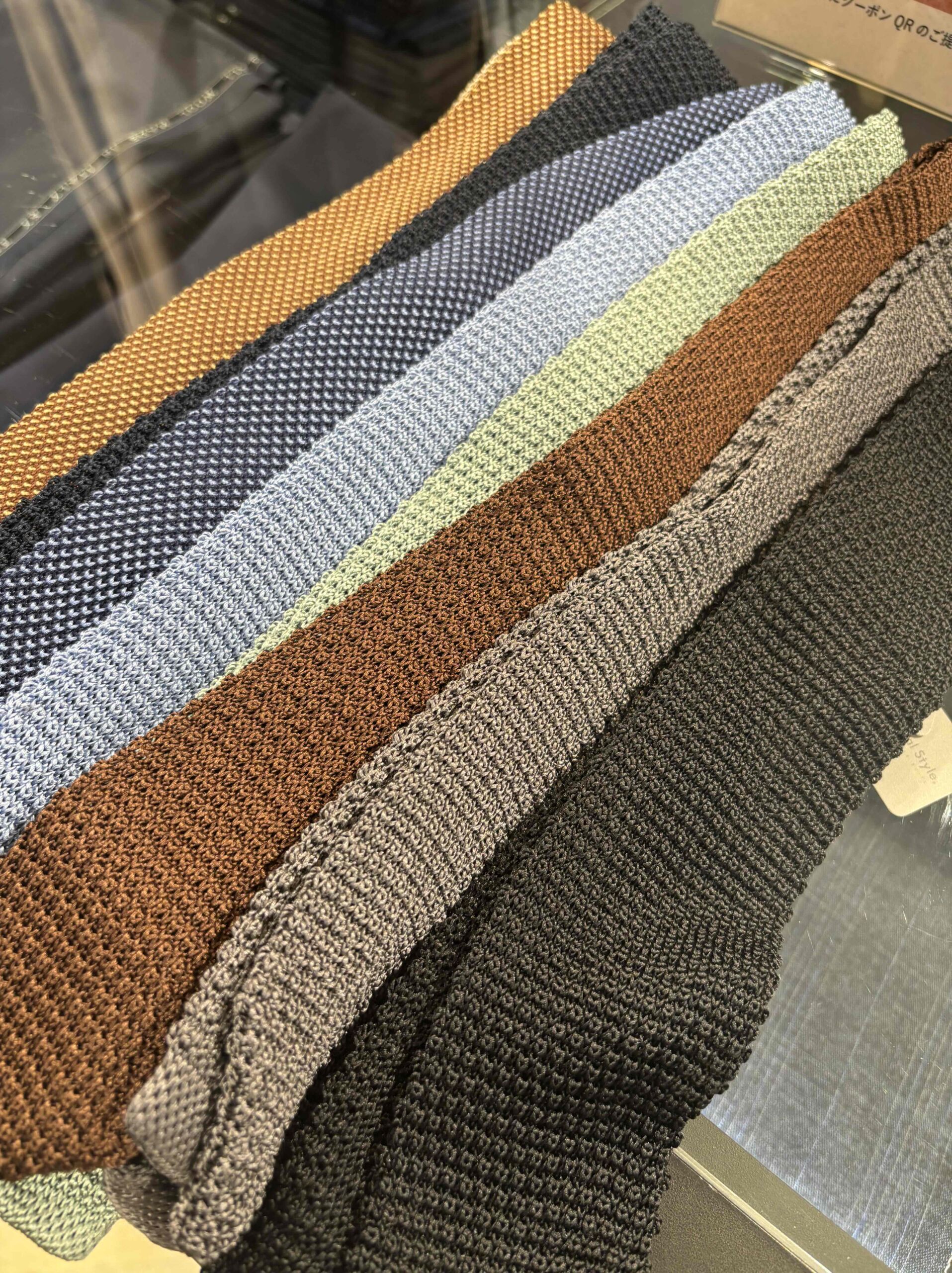 これはニットタイといって一般的なネクタイよりもカジュアル感があるので夏場でもオシャレにネクタイを付けたい人にはオススメです。