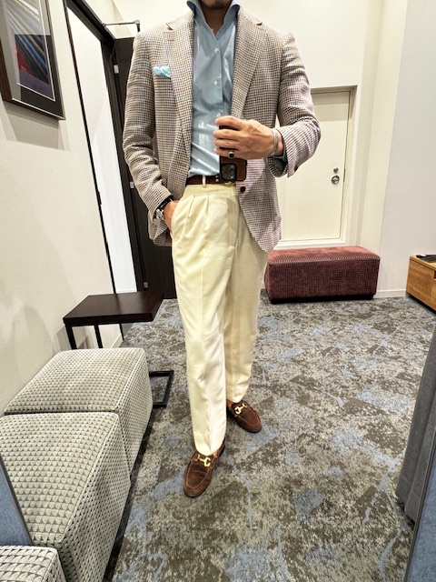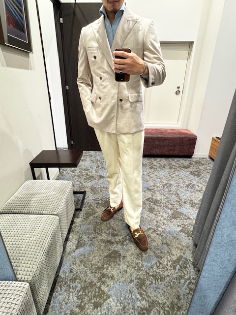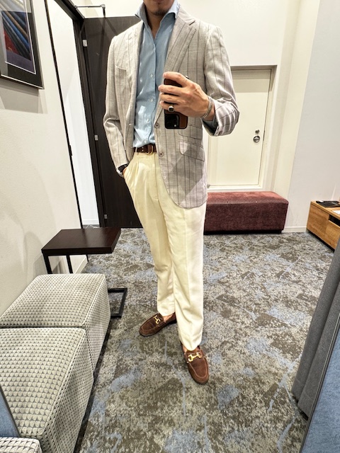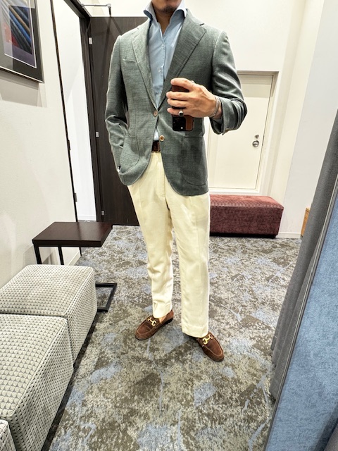 特にリネン素材が好きで、ジャケットもシャツもスラックスもリネン、、、