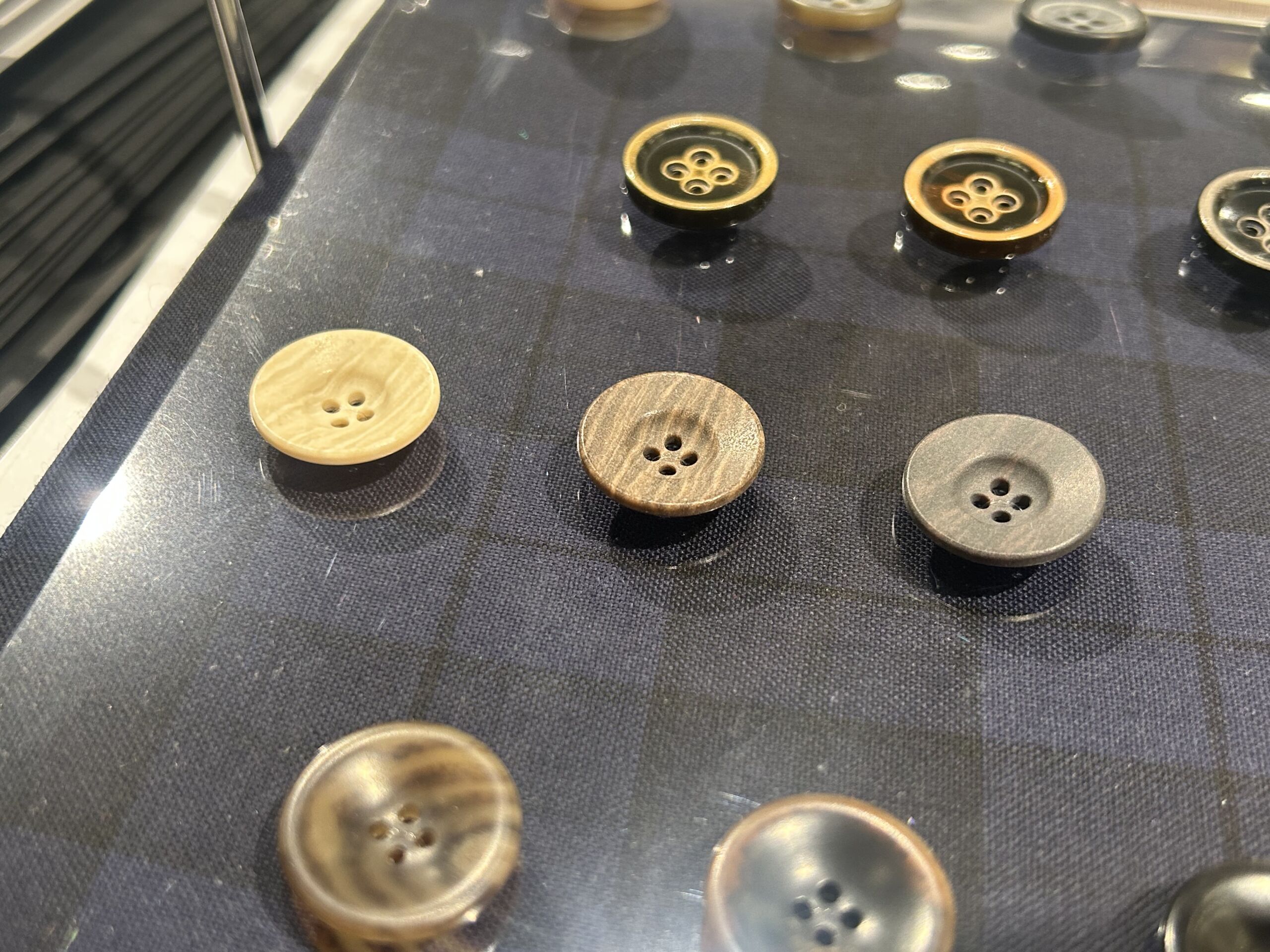 季節感のある釦で併せていただくとカジュアル感も出せます。
