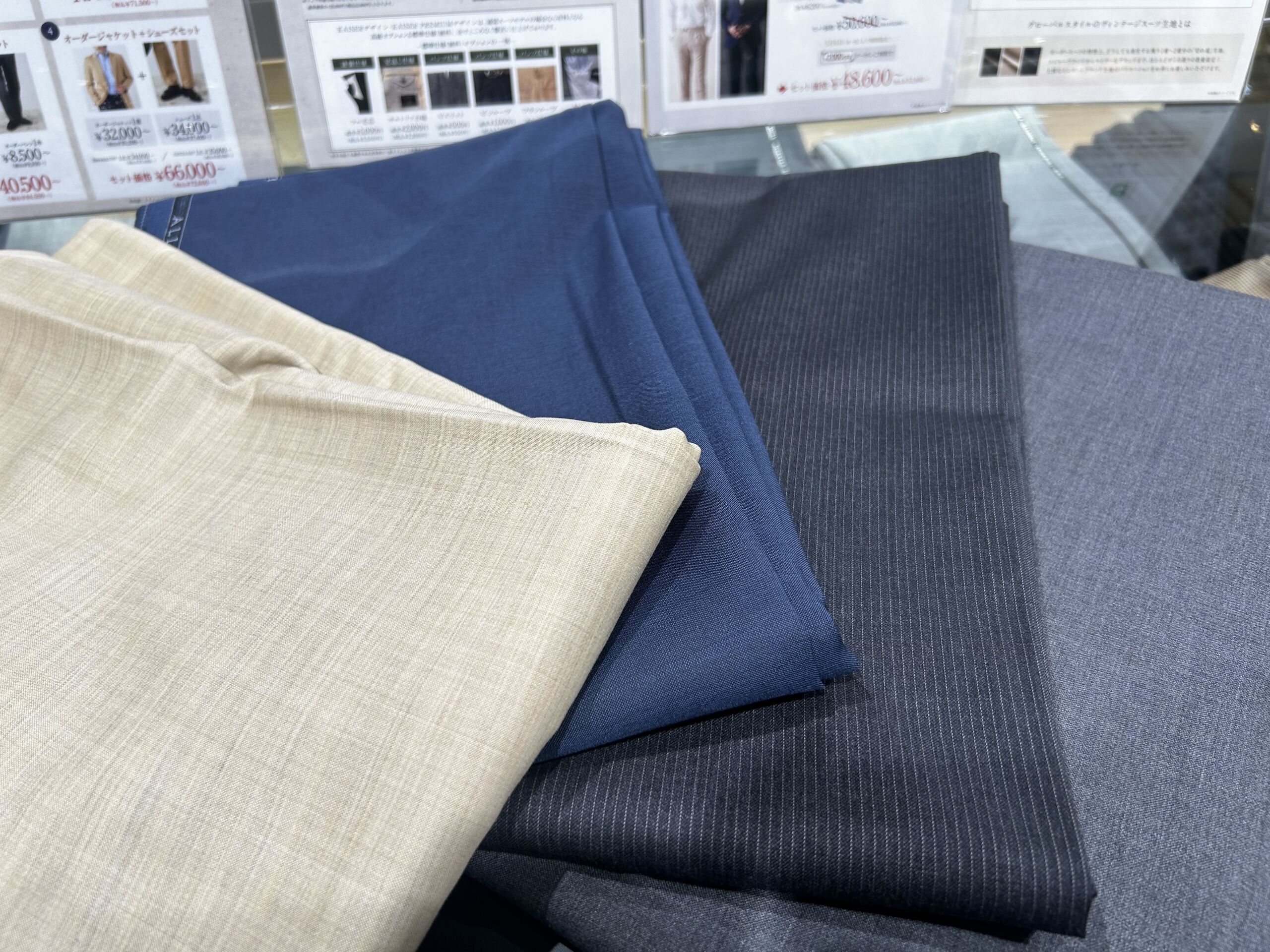 ビジネスシーンでよく使われるのはトロピカルの生地になります!