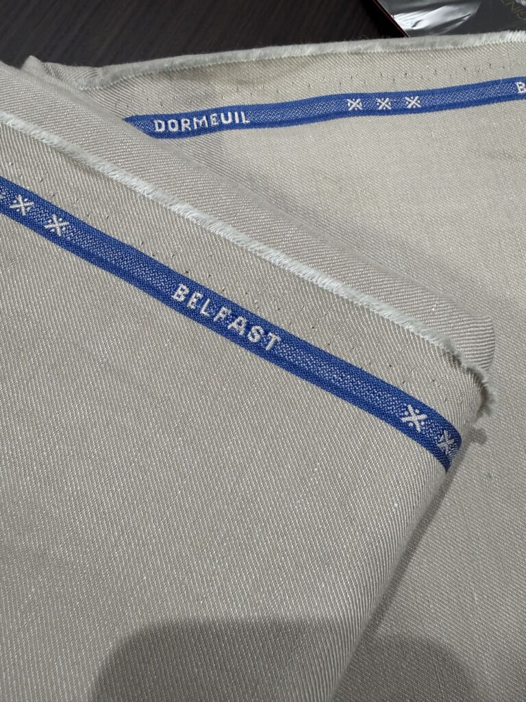 そして今回の生地はイギリス生地のウールとリネン混。