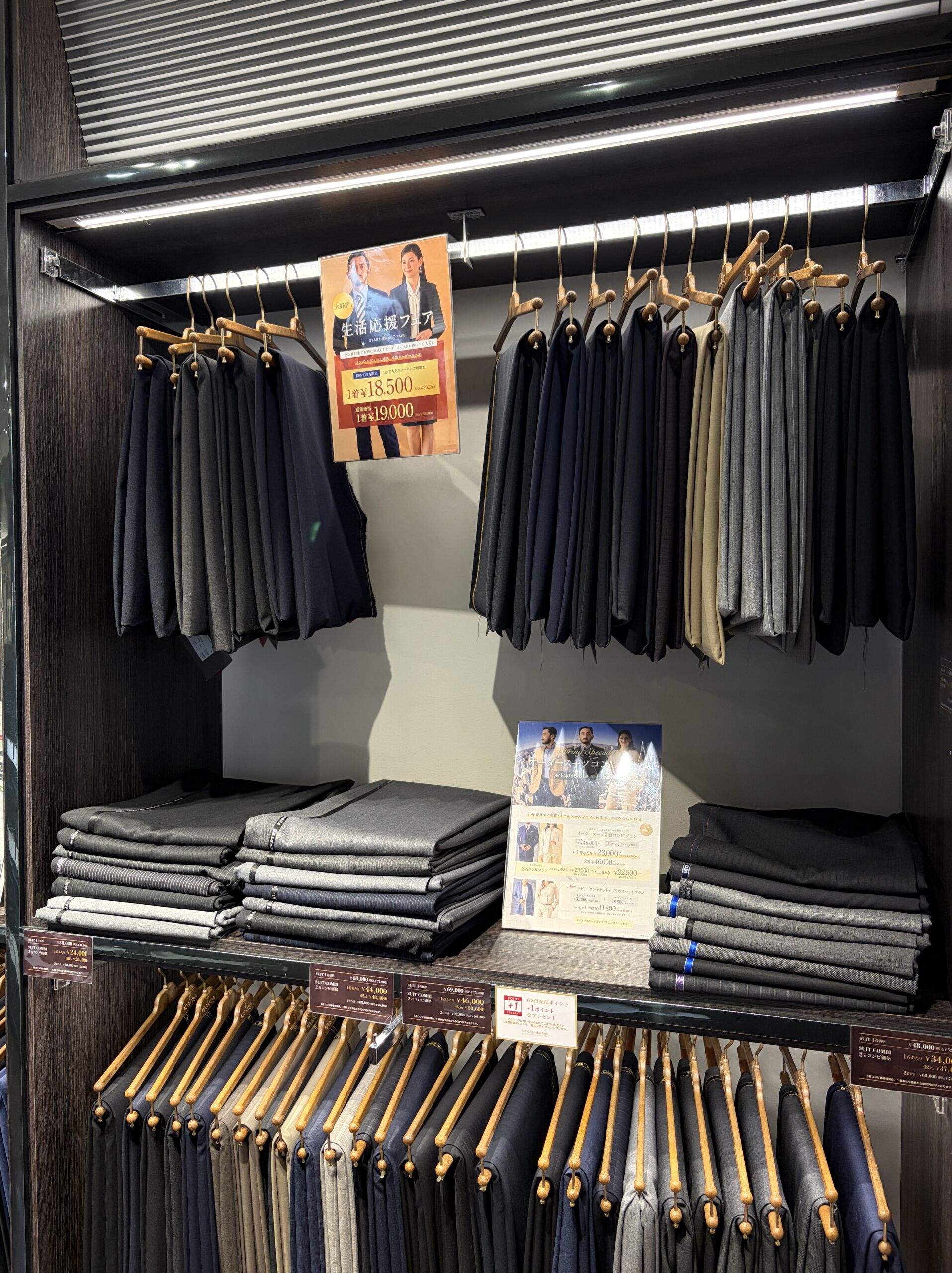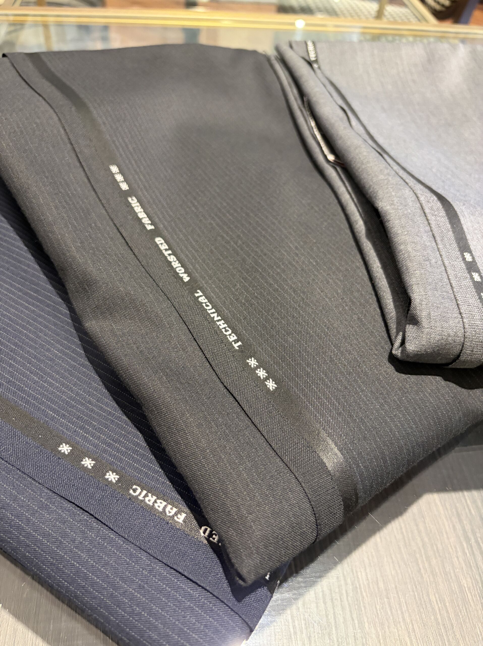 「スーツはウールが良い」と思われがちですが、用途や着用シーンによって適した素材は異なるので、是非店頭にお立ち寄りいただき、生地を手に取ってウールとポリエステルの生地の違いを感じてみてください。