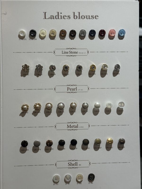 釦は華やかなアクセサリー釦を豊富にご用意しております