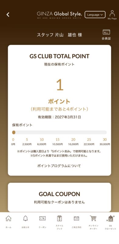 グローバルスタイル全店でお使い頂けるポイントが表示されます!