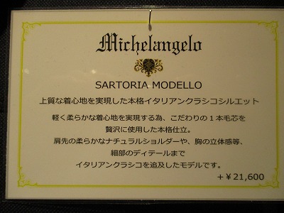 弊社オリジナル高級仕立てのモデル、ミケランジェロサルトリアモデルのオリジナルネームもついていおります。
