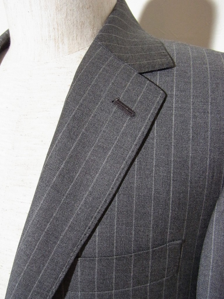 生地は(伊)イタリアのキャノニコ、グレーストライプですが秋冬でも適度な厚さで