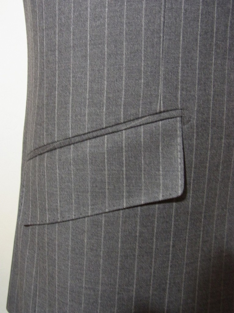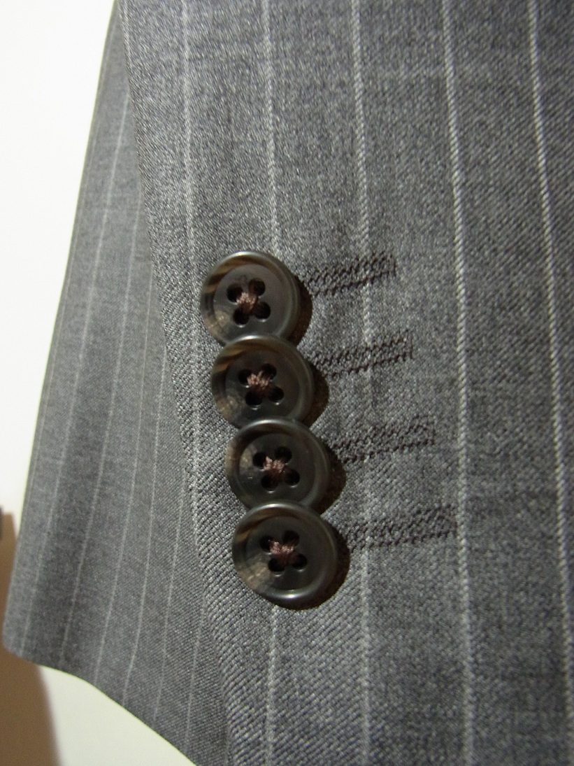 今回のスーツのその他の仕様は重ねボタン、ハッキングポケット、
