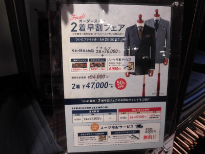 早割フェアは、スーツを2着以上ご注文頂いたお客様対象になります。