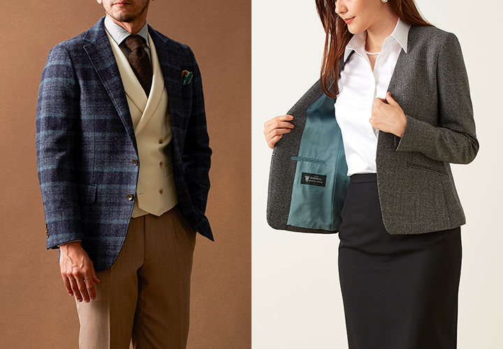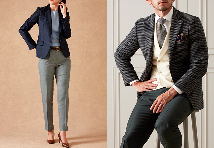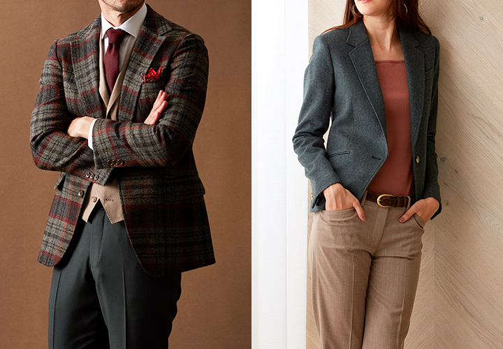 イタリアやイギリスといった海外から輸入したお洒落で上質なインポートブランド生地を豊富にご用意。生地により異なる風合いや色柄でジャケット&パンツのオーダーがお楽しみいただけます。