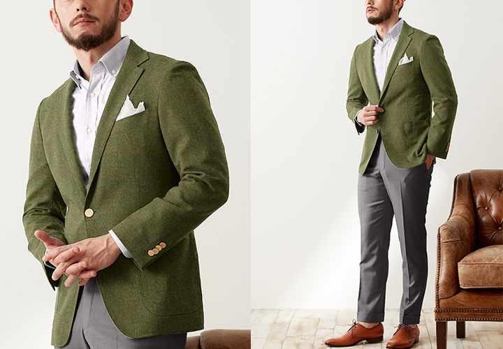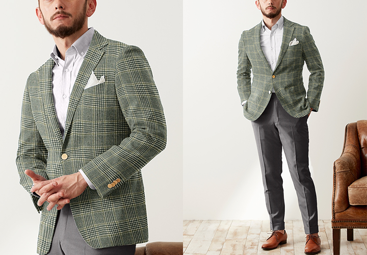1782年にイギリス・ストラウドで創業された歴史ある生地メーカーのマーリン&エヴァンス。フランネル、サキソニー、シェトランドなど、クラシックな素材を展開しています。耐久性が高く、長く愛用できるジャケットに適しています。特にナチュラルな色合いや立体感のあるツイードは、英国ならではの風合いと重厚感を兼ね備え、モダンなスタイルを演出します。