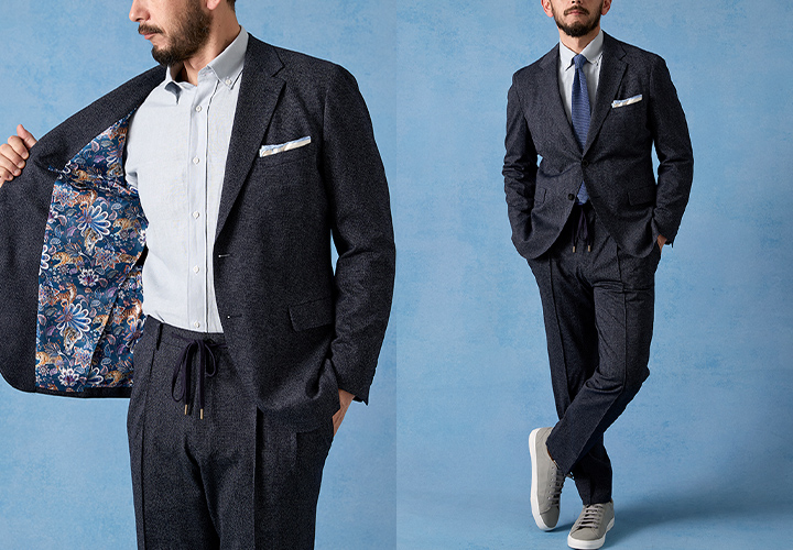 オーダースーツ専門店グローバルスタイルが提供するセットアップスーツ専用生地です。抜群のストレッチ性や通気性、軽さ、サラリとした肌触り、さらには防シワ性などを実現し、着用時の快適さやイージーケアを追求した1着をお仕立ていただけます。カラーバリエーションも豊富な生地をご用意。抜群の着心地にオーダーだからこそできる美しいシルエットを体験ください。