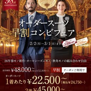 オーダースーツ早割コンビフェア!!【COCOSA熊本店】