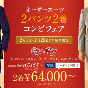 皆様こんにちは 気づけば今月も残り2日!! 2024年は年明けから色々ありましたが皆様いかがお過ごしでしょうか? 1月がもう終わるということは、 そうです。今月のお得なオーダースーツフェアが終了間近なのです💦 ということで改めてご紹介いた ...