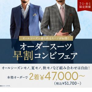 ブログをご覧の皆様、こんにちは!! 銀座5丁目店の黒木です! 本日は、グローバルスタイルで開催中のお得な「早割コンビフェア」のご紹介です!! 通上、オーダースーツ上下38,000円~のご用意となりますが、 ...