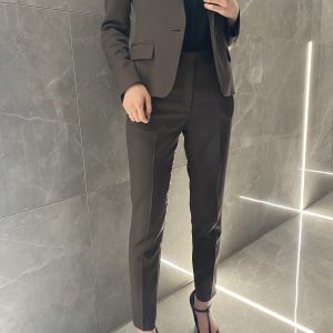 熊谷です~!新しいスーツができました! 生地はDORMEUIL EXEL BLUEのブラウンですー! 初めてレディースパターンのテーパードで仕立て、 ひざと裾をだいぶタイトにとってもらったのですが さすが ...