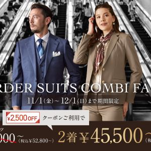 皆様、こんにちは!! 今年は結局旅行にいけず。井崎でございます。 来年はどこかへ行きたい! さて、本日は最終日が近づいてきたフェアについてのご紹介!! 現在開催中のフェアはこちら! 2着でお得なコンビフェア。 ...