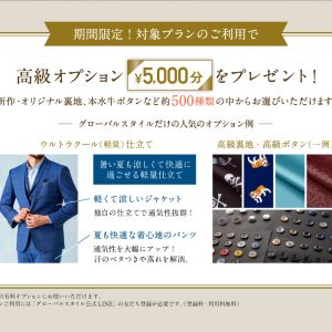 こんにちは(=゚ω゚)ノ 服飾学生時代 服を縫う時スプラのフェスの音楽を聴いてテンションをアゲアゲにしていた大阪本町店の北川です。 今回は昨日から始まりました早割フェアについてご紹介‼ フェアの内容としては スーツ2着、も ...