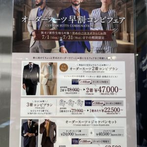 皆さんこんにちは! 池袋東口店の田宮です! 今年も半分が終わり、7月に突入しましたね! さて本日は、新たにフェアが始まりましたのでご紹介させていただきます! オーダースーツ ...
