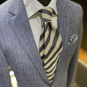 ストライプスーツは、ビジネススーツの中でも王道のデザイン。 信頼感や誠実さを演出できるため、多くのビジネスシーンで選ばれています。 ただ、そんな定番だからこそ、少し“遊び”を加えるのがオーダースーツの楽しみ方。 たとえ ...