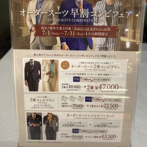 皆様こんにちは♪ 本日は7月からスタートの早割フェアのご紹介です! お好きな生地で上下スーツ2着選んで頂いたお客様対象で、LINE公式友達登録で獲得できる早割ク ...