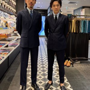 皆さんこんにちは。 京都四条店末武です。 今日は松本副店長とすごく似たコーディネートになりました。 ダークネイビーのダブルスーツにシャツもSAXでネクタイがきれいに見えるタブカラー。 実は昨日の夜に、副店長からスーツとシャツ合わ ...