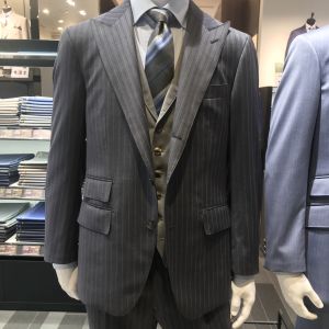 皆様こんにちは。 八重洲店 岡崎です。 本日は、サンプルスーツのディテールをご紹介いたします。 イタリアブランド『トーニャ』のグレーストライプスーツです。 グレーにブルーのストライプが入っていて、オシャレですね! トーニャは縦横方 ...