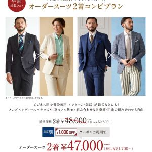 皆様、こんにちは 文月となり日々の暑さが増す一方ですので 体にはお気を付けください 本日は今月のフェア情報のご紹介させていただきます 今月は二着ご購入いただくと合計金額から千円お値引きができます 早割キャンペーン開催中なので、皆様是非とも ...