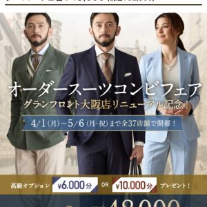 皆様こんにちは。新宿3丁目店の坂口です。 GWが明けたということで本日から新しいフェアが開催中です!! 今回のフェアの内容は2着ご注文いただくと 高級オプション5,000円プレゼント! これからの暑い季節に軽量仕立てにするもよし 安定の釦 ...