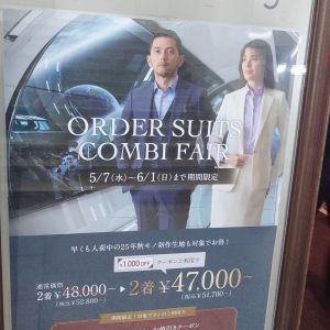 只今開催中のフェアをご紹介♬ ☆今月は二着スーツご注文で一着当たり500円のお値引き☆ 〇通常一着だと一着価格が適応 〇二着の場合はコンビ価格が適応となります 〇更に三着の場合は三着コンビ価格が適 ...