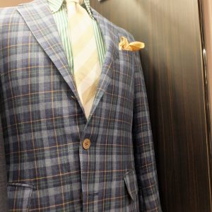 こんにちは。 本日から連休です。 天気が良いのでお出かけされている方も多いのではないでしょうか。 さて本日は、グレーチェックのスーツをご紹介いたします。 シングル2釦。 ...