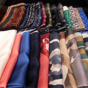 皆さんこんにちは!本日は小物をご紹介致します! まずはポケットチーフです!無地の物から柄物まであります! 次はネクタイです!無地やレジメンタルなどとくオススメをご紹介致します! ...