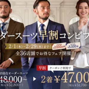 こんにちは!神戸三宮店の佐藤です。 本日は今月のフェアについて紹介させていただきます! 2着同時にお仕立ていただくと¥1000オフになります。 そして¥5000分の高級オプションをプレゼントいたします! ...