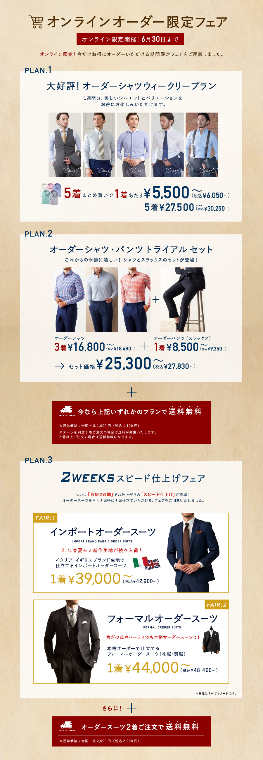 オーダーシャツウィークリープラン、シャツ5枚セットがお得【オンラインオーダーサービス】