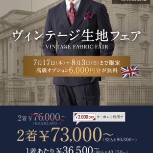 数量限定のヴィンテージ生地でオーダースーツ【COCOSA熊本店】