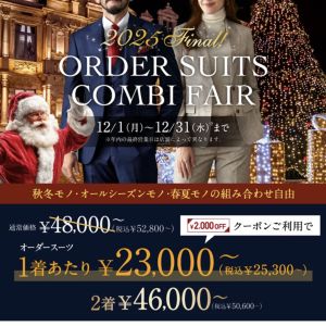 2025年ラストのフェア!駆け込みでスーツ作りましょう!【Premium Marunouchi 横浜スカイビル店】