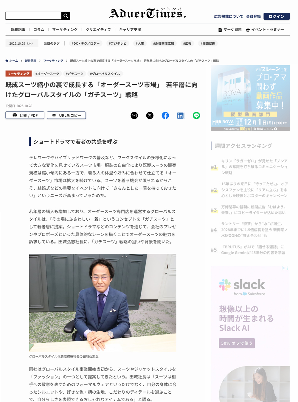 今回の取材は、「その場にふさわしい一着」というコンセプトを「ガチスーツ」ショートドラマとして若者層に提案した戦略の狙いや背景について述べております。