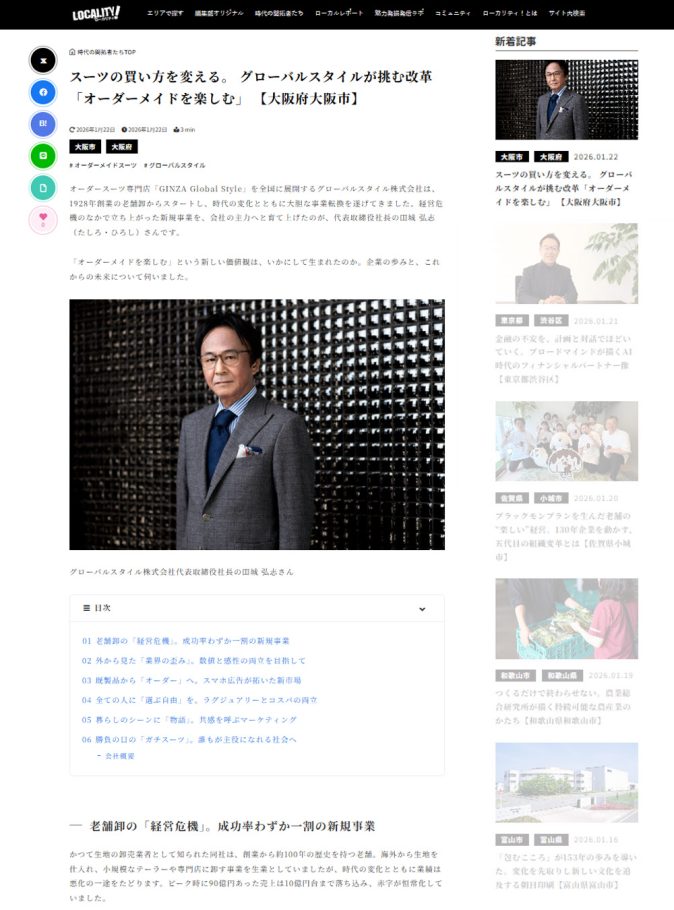 時代の開拓者たちを発信する報道メディア「ローカリティ!」の取材を受け、ウェブサイトに取材内容が掲載されました。