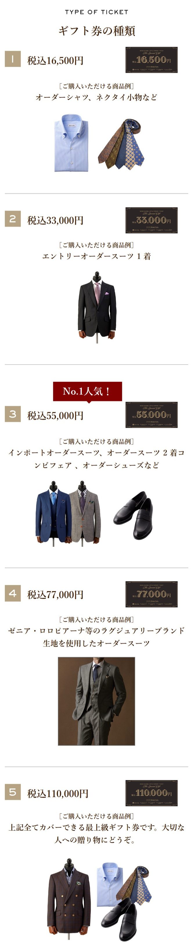 ▼▼▼オーダースーツやオーダーシャツなどのギフト券をご検討の方はこちら。