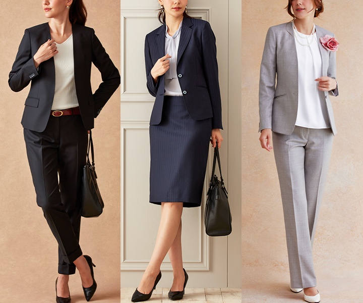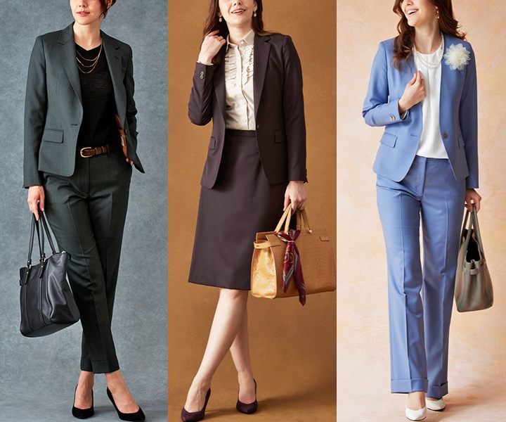 ■ 関連ページ:レディースのネイビースーツの着こなし一覧