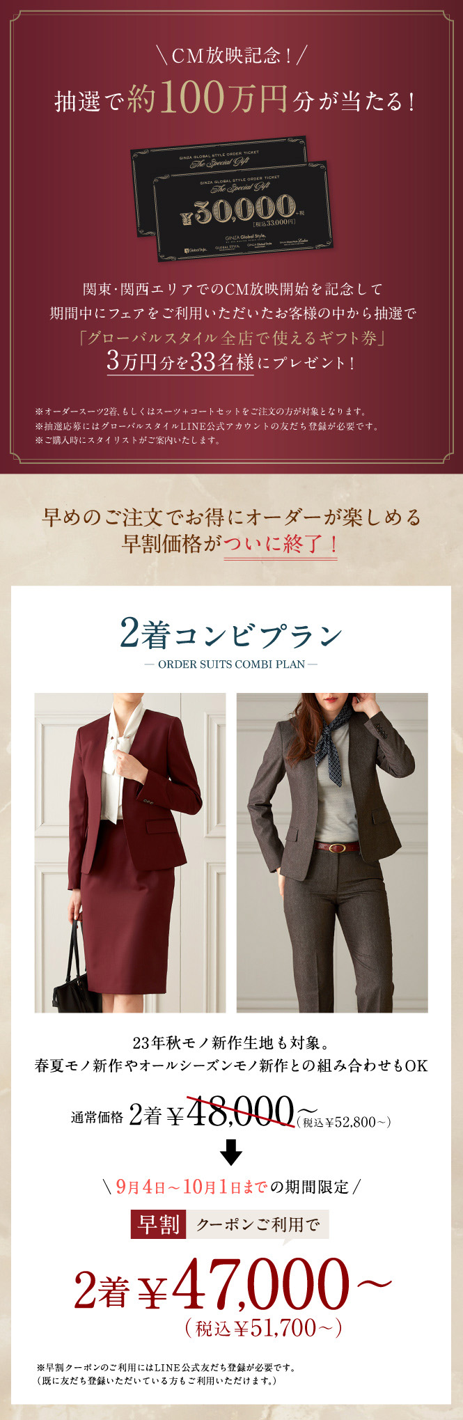 ▶本格オーダースーツ1着あたり¥23,000~(税込¥25,300~)