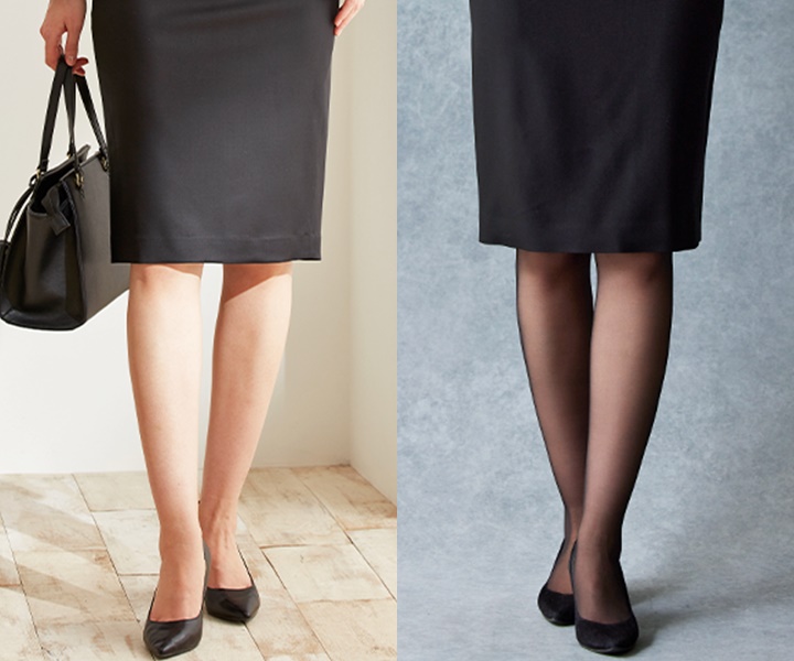 ストッキングは、黒色で肌が少し透ける程度のものを選びましょう。冬でもタイツではなくストッキングを選んでおくと安心です。防寒対策や保温効果としてタイツを着用する場合は、リブタイツや分厚い素材のものは避け、薄手のタイツを選ぶと良いでしょう。お葬式では黒の無地一択ですが、お通夜の席では、肌色(ベージュ)のストッキングもマナー違反にはなりません。