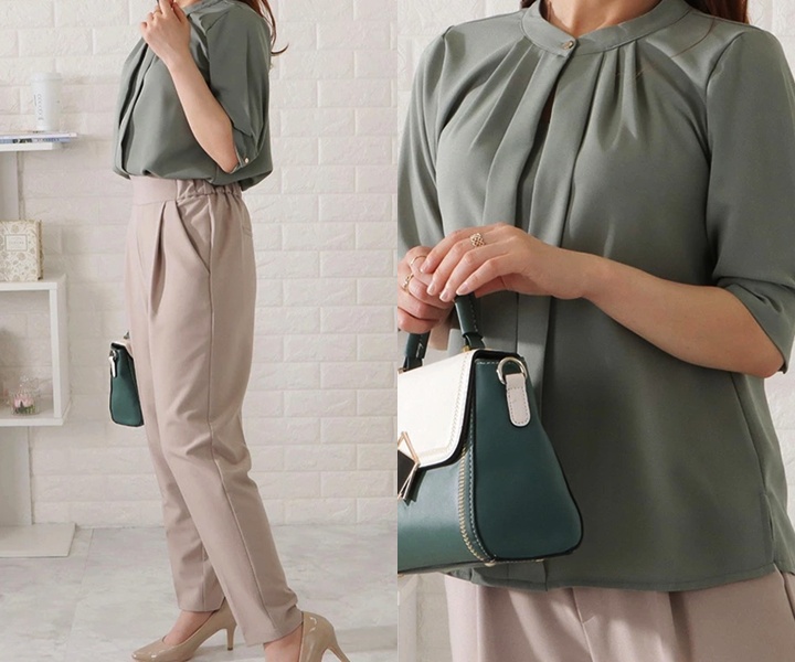 (引用:https://www.rakuten.co.jp/)■グリーンブラウス×ベージュパンツ