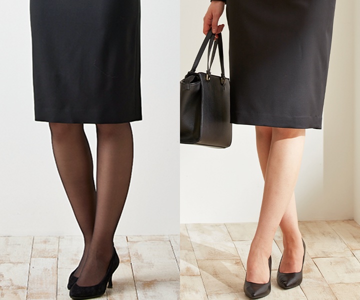 ブラックフォーマルのストッキングは、TPOによって選び方が異なります。弔事では、厚手のタイツではなく、黒色で肌がわずかに透ける程度のストッキングを選ぶと安心です。光沢のあるタイプや柄入りのものは避け、落ち着いた印象のものがおすすめです。ただし、お通夜では肌色(ベージュ)を着用してもマナー違反にはなりません。また結婚式や卒業式といった慶事の場でも、肌色のストッキングが良いでしょう。自然なトーンで、清潔感のある着こなしを意識することが大切です。