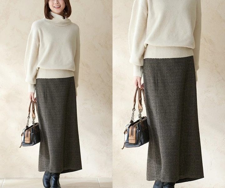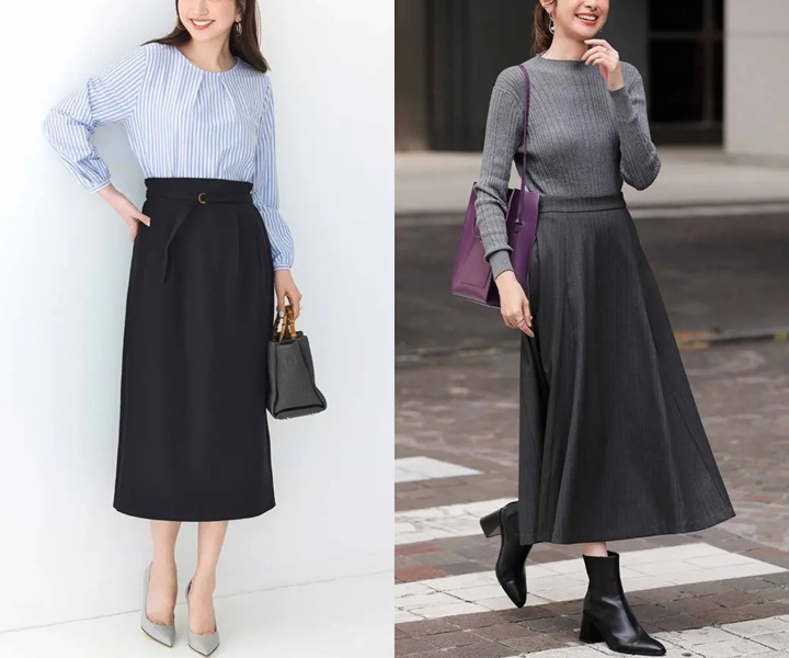 秋冬のオフィスカジュアルは、温かみのある素材や落ち着いた色合いを意識すると良いでしょう。スカートに季節感を取り入れることで、上品さと快適さを兼ね備えたスタイルが完成します。