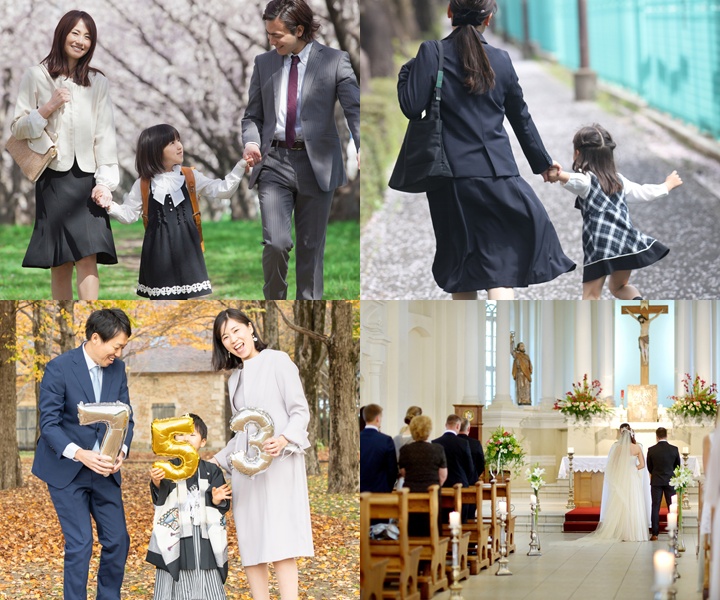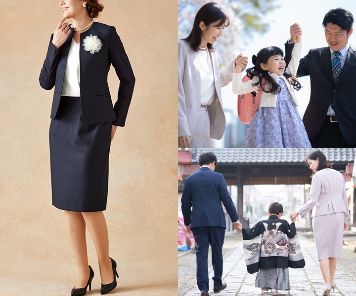 セレモニースーツは母親としての家族行事や人生の節目など、主にフォーマルな場で着用します。代表的なシーンとしては、お子様の入園式・入学式、卒園式・卒業式、七五三、結婚式の参列などがあります。いずれも格式が求められる場であるため、落ち着きと上品さを兼ね備えた着こなしが基本です。華美すぎず、周囲との調和を意識してコーディネートすることで、場にふさわしい印象を与えられます。