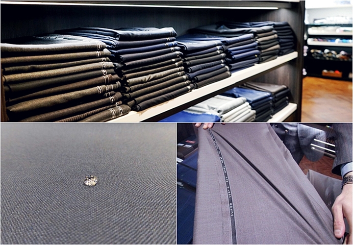 さすが銀座の一等地、とてもムードのあるお洒落な外観です。しかし、本当にお手頃価格でオーダースーツが作れるのでしょうか?お店に入ると、店内にはたくさんのスーツ生地が並んでいます。