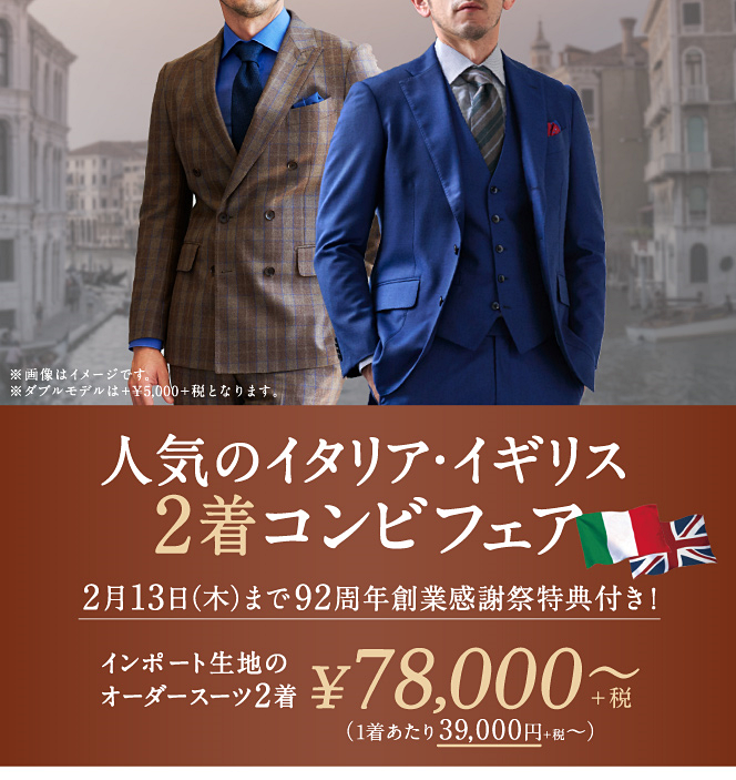 26年春モノ新作生地も対象で本格オーダースーツを